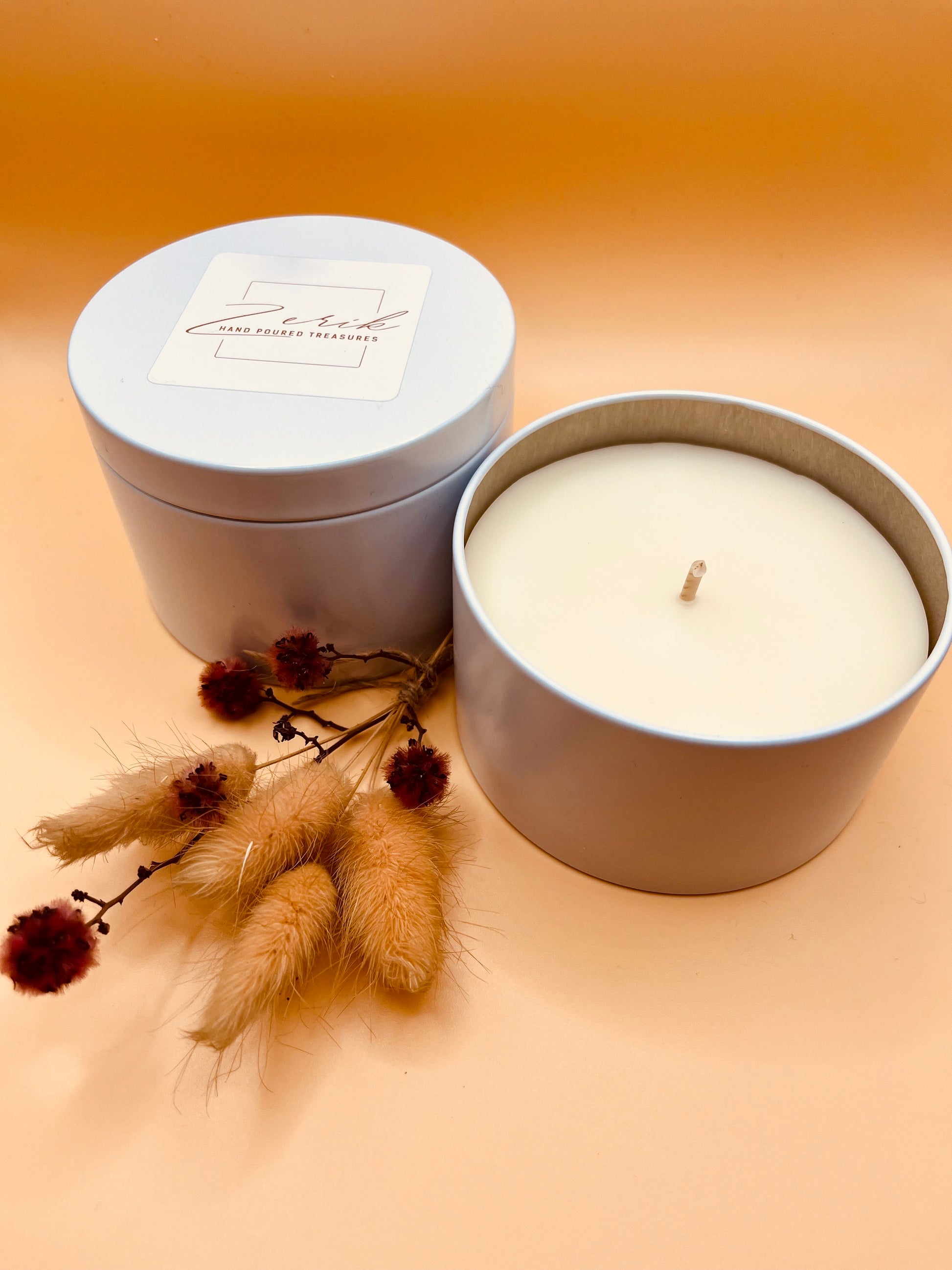 Whether you're heading on a weekend getaway, a business trip, or a long vacation, our travel candle tins offer a blend of practicality and luxury.Their compact size, durability, and ability to enhance your environment make them a must-have for any traveler looking to bring a touch of home with them. They are designed for portability, are small and lightweight, making them easy to pack without taking up much space in your luggage. Unlike glass containers, the Zerik Treasures metal tins are sturdy and resistant to breakage, ensuring your candle remains intact even if your bag gets jostled. The enclosed design of candle tins helps contain the flame and any melting wax, reducing the risk of spills or accidents